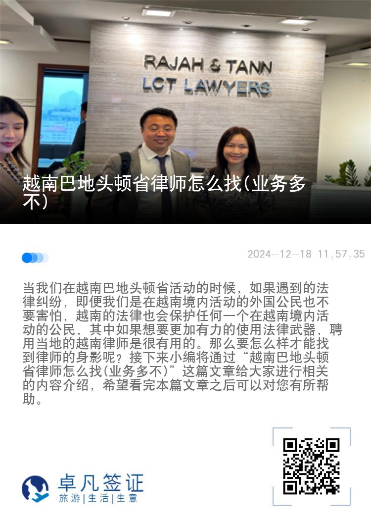 当我们在越南巴地头顿省活动的时候,如果遇到的法律纠纷,即便我们是在越南境内活动的外国公民也不要害怕,越南的法律也会保护任何一个在越南境内活动的公民,其中如果想要更加有力的使用法律武器,聘用当地的越南律师是很有用的。那么要怎么样才能找到律师的身影呢?接下来小编将通过“越南巴地头顿省律师怎么找(业务多不)”这篇文章给大家进行相关的内容介绍,希望看完本篇文章之后可以对您有所帮助。